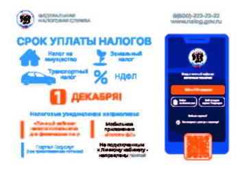 Напоминаем, что срок уплаты физическими лицами имущественных налогов за прошлый год до 1 декабря текущего года