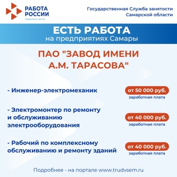 Внимание: есть работа на предприятиях Самарской области! Ознакомиться со всеми вакансиями можно на портале "Работа России".
