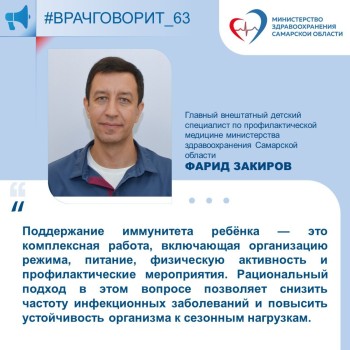 Об этом рассказывает главный внештатный детский специалист по профилактической медицине министерства здравоохранения Самарской области, заведующий детской поликлиникой, врач-аллерголог-иммунолог Самарской областной клинической больницы имени В.Д. Середавина Фарид Закиров: