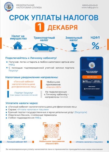 1 декабря истекает срок оплаты физическими лицами имущественных налогов за 2024 год.