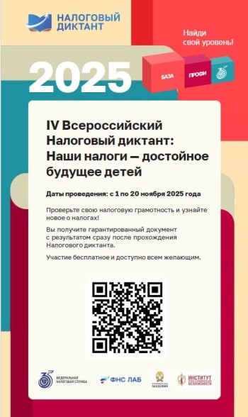 Стартовал IV Всероссийский Налоговый диктант: «Наши налоги – достойное будущее детей», который проводится ФНС России совместно с Президентской академией. В нем могут принять участие все желающие, интересующиеся темой налогов из любой точки мира.