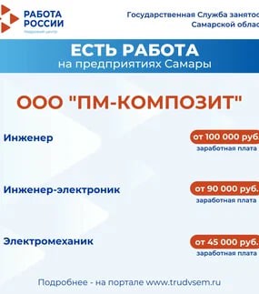 Внимание: есть работа на предприятиях Самарской области! Ознакомиться со всеми вакансиями можно на портале "Работа России".