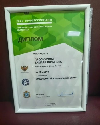 Проскурина Тамара - ученица школы №154 заняла 3-е место в компетенции «Медицинский и социальный уход».