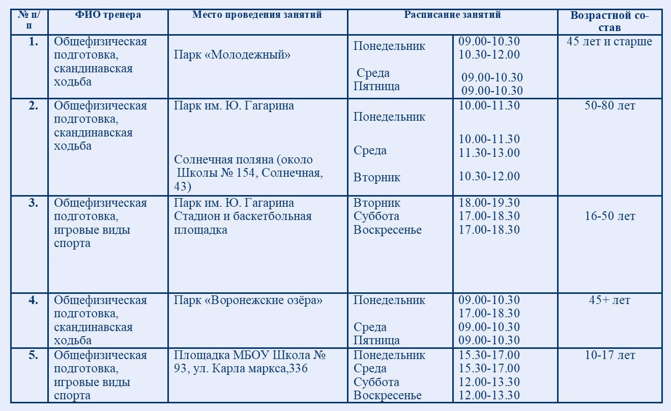 Делимся фото и расписанием занятий по общефизической подготовке и скандинавской ходьбе на апрель!